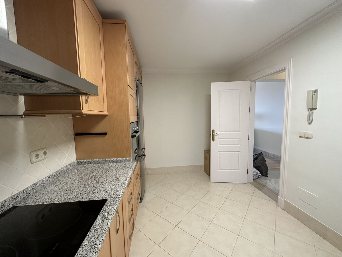 This Benahavis apartment is located in the prestigious complex. Built in 2005, these apartments were designed with high ceilings and generosity of space. This 3 bedroom property in Monte Halcones commands an elevated position with south-west orientation overlooking the coast below. With secure underground parking, convenience is key, with an elevator which rises up to open right outside the front door. Entering this home one is immediately struck by the elegance and comfort within this 3 bedroom apartment. Beautiful polished marble floors give a sumptuous base upon which the elegant furniture sits. To the left of the front door the kitchen is located, with plenty of granite worktop space and multiple wooden cupboards, making it perfect for clean and tidy food preparation.