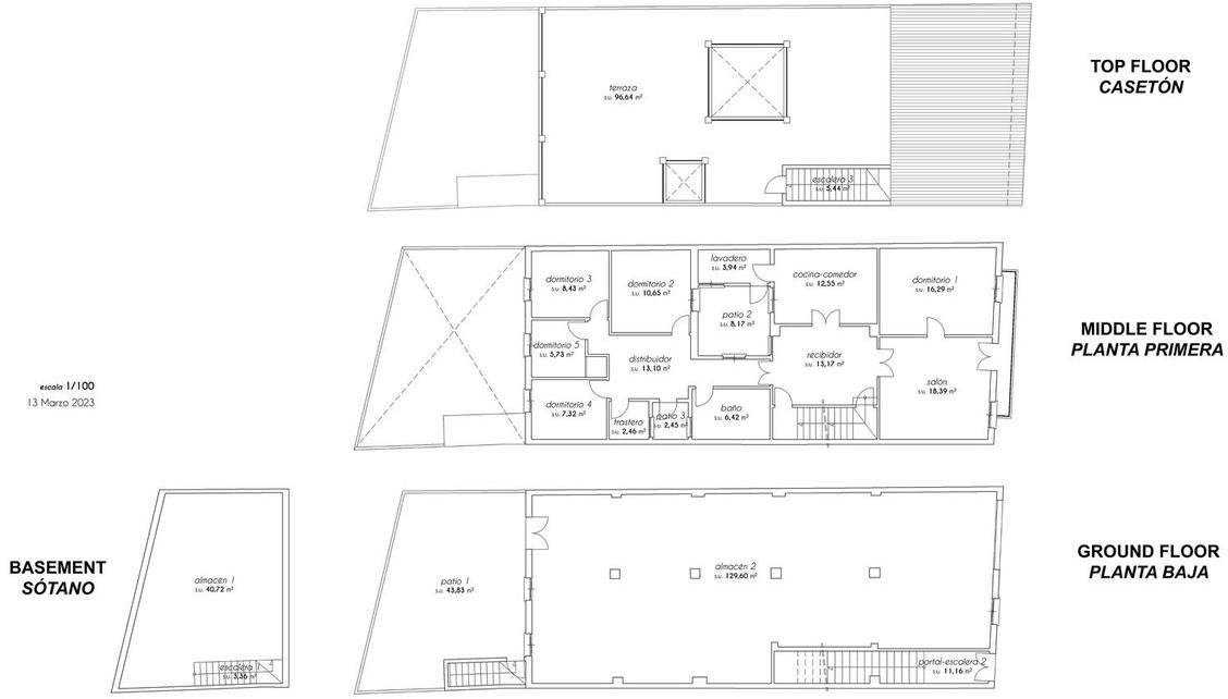 On the main floor of the home, you’ll find 4 spacious bedrooms, a full bathroom with both a bathtub and shower, a large kitchen with an integrated dining area, a utility room, two interior patios, and a living room with a balcony facing the street, allowing for excellent natural light to bathe the house. All the rooms in the house are exterior facing, ensuring good ventilation and brightness.