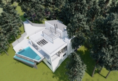 The house has been built with top-quality materials on a 2,120 m2 plot and features air conditioning, underfloor heating, pre-installed sound equipment, and a fully equipped kitchen.