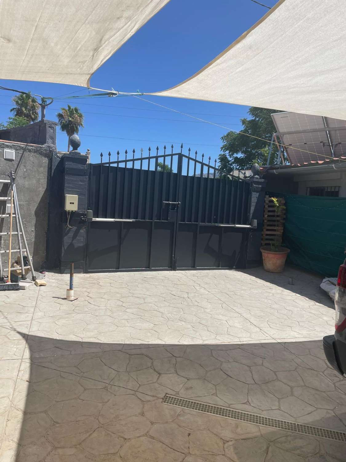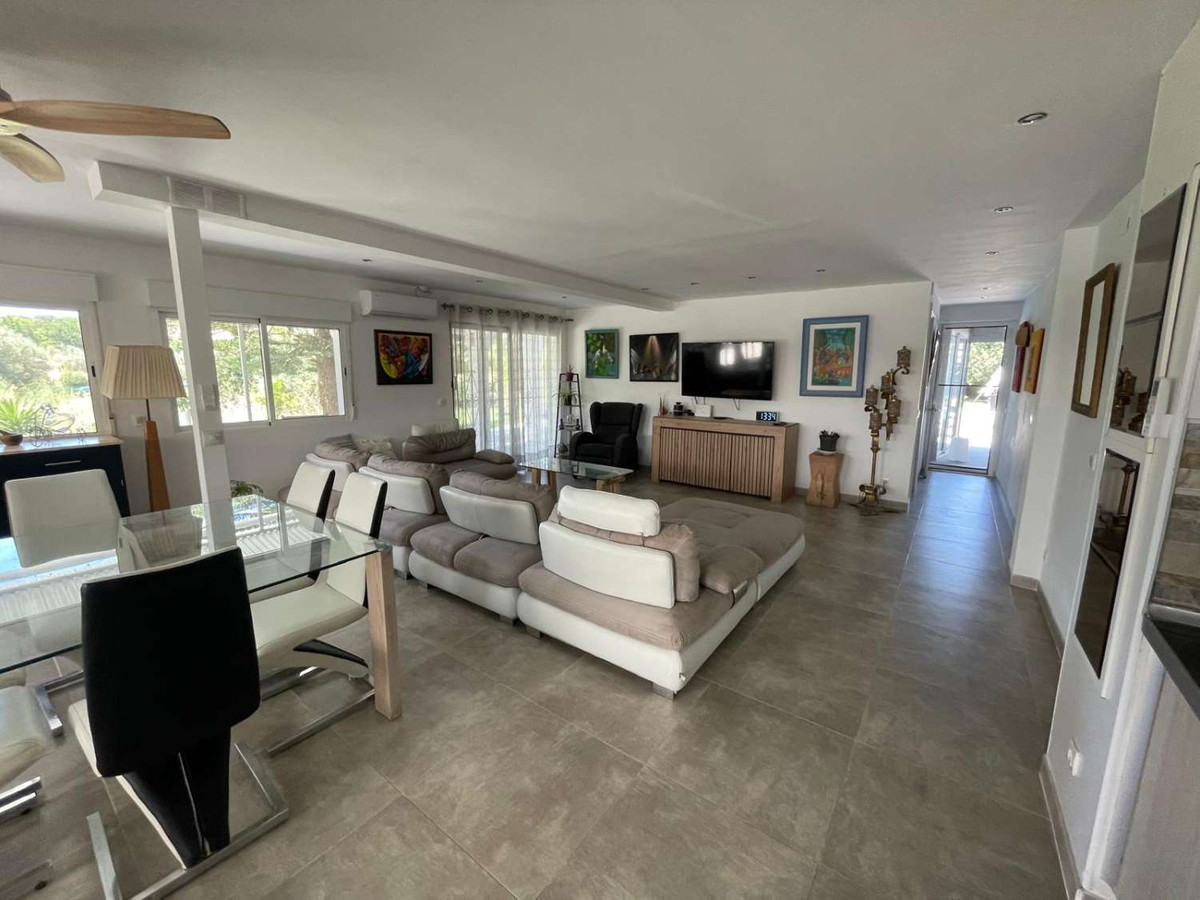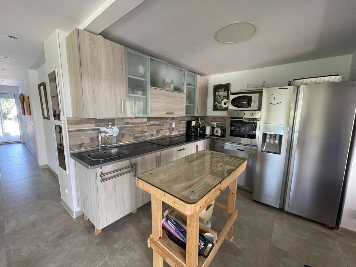 The villa consists of a spacious and bright living-dining room with a fully furnished open-plan kitchen, 4 double bedrooms, 3 bathrooms, several terraces, as well as a covered BBQ area and a splendid saltwater pool. The villa has a gym, a chill-out terrace, a laundry room, air conditioning throughout the house, double-glazed windows, an automatic gate, and a fully renovated house with high-end materials, several parking spaces are available on the plot. The apartment has its own separate entrance, providing more privacy if you want to rent it out. It consists of a living room, kitchen, one bedroom, and a bathroom, as well as a small enclosed patio. The entire property is supplied with electricity via 16 solar panels with a power output of 8.8 kW/h, in addition to mains electricity. The water supply is from a community well. The property has a 10,000-liter water cistern and three 1,000-liter tanks. The property also has a wide variety of fruit trees such as orange, avocado, pomegranate, fig, and mandarin trees, among others.