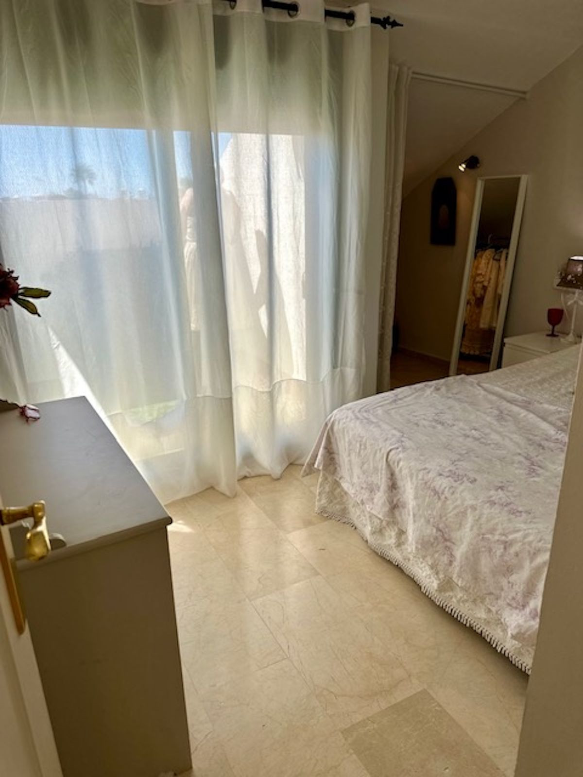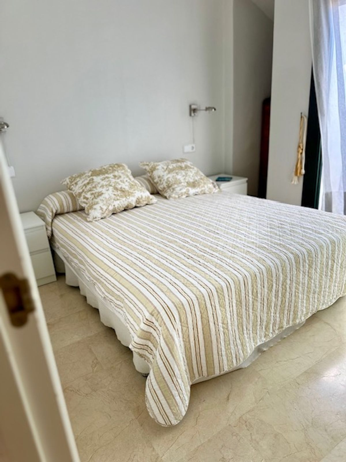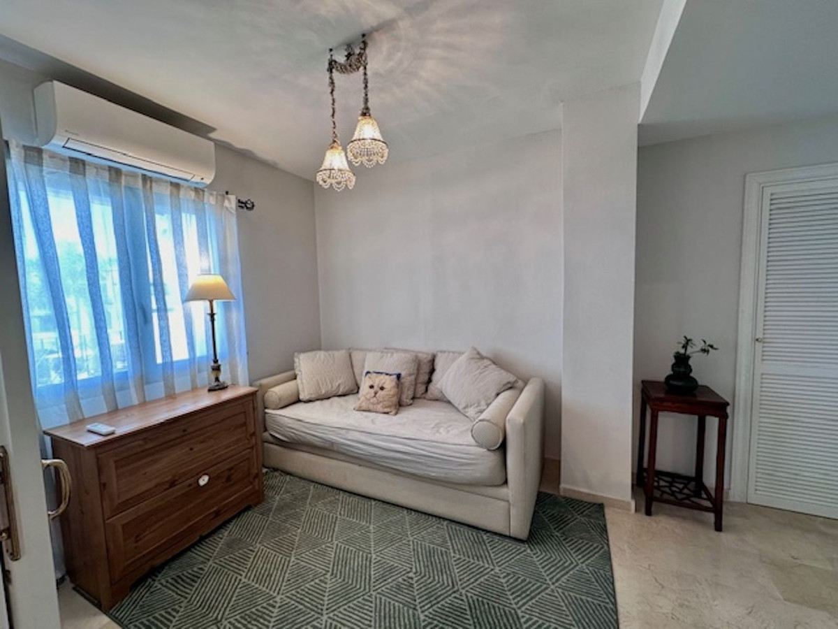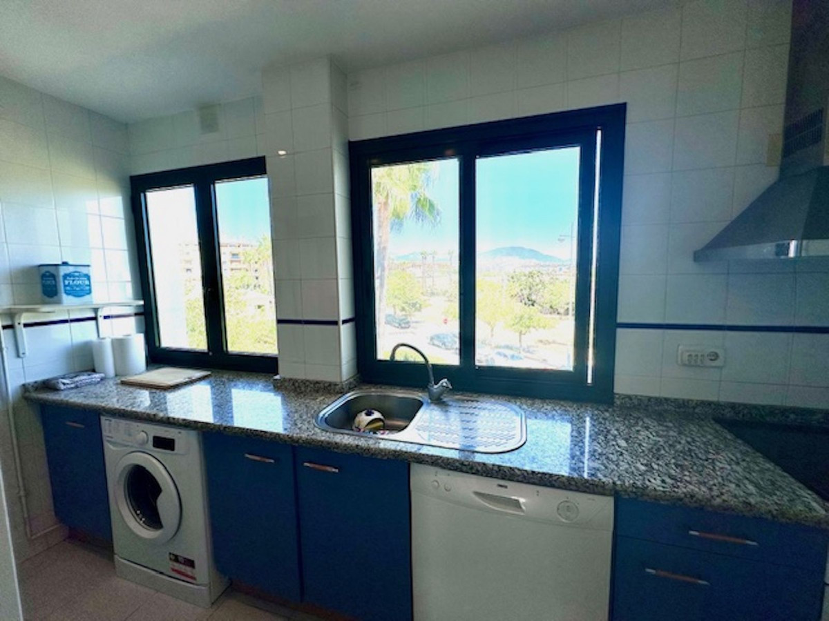 Spacious entrance hall, with a kitchen to the right overlooking the complex and exceptionally bright, with windows and natural light. The laundry area off the kitchen has been converted into a bedroom with a 90-cm bed. This makes it an option for an additional guest!