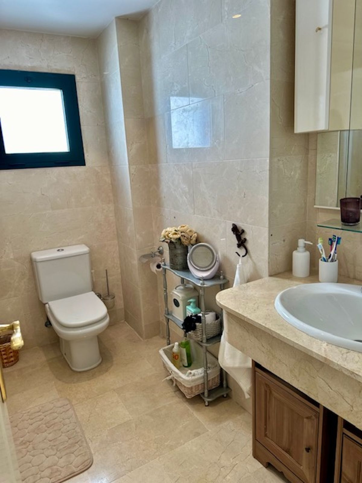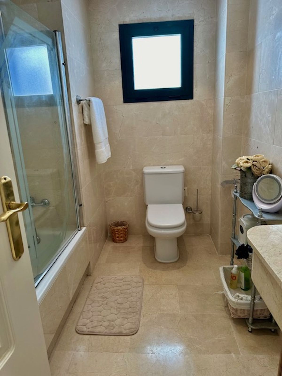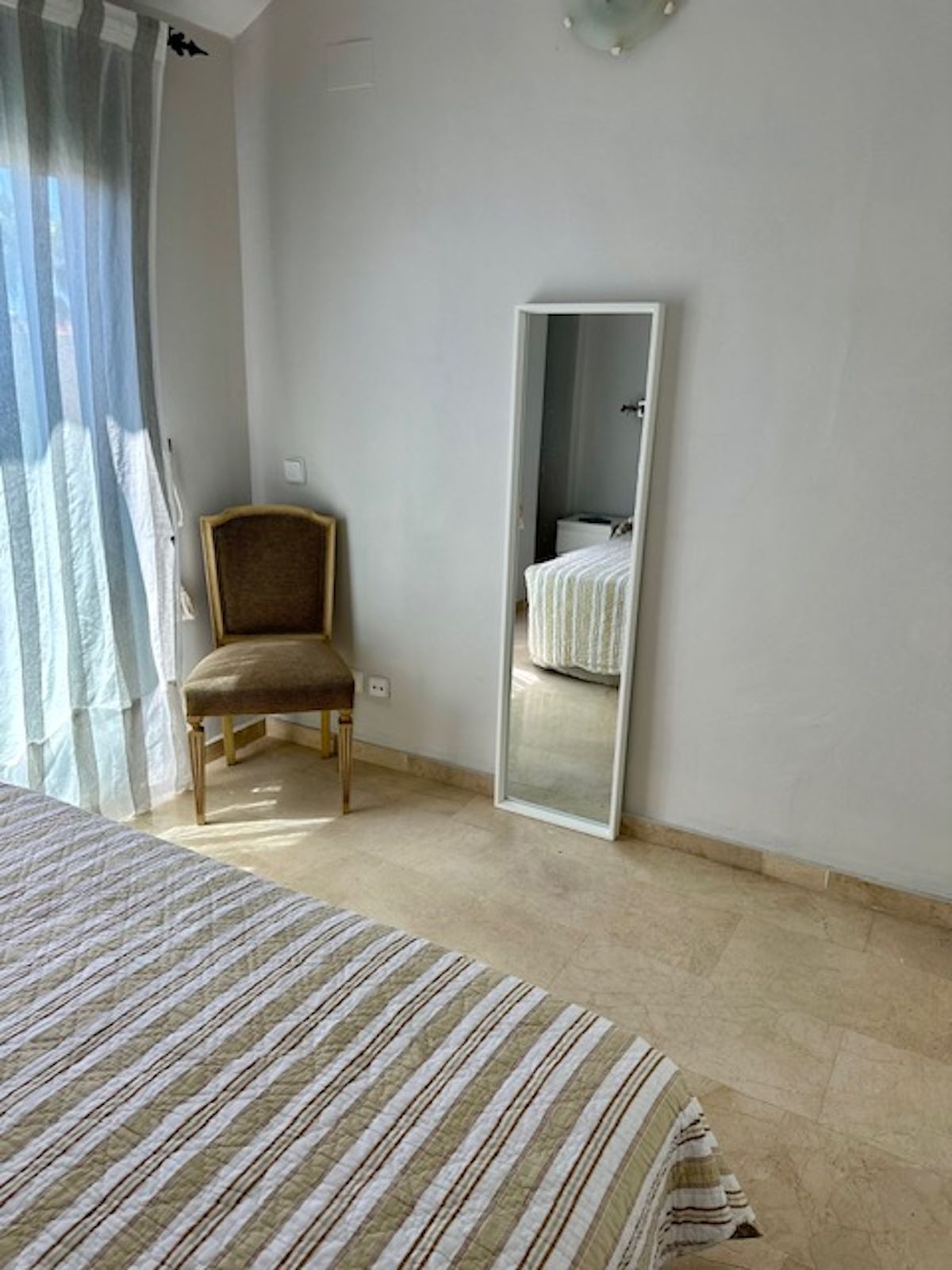 Spacious entrance hall, with a kitchen to the right overlooking the complex and exceptionally bright, with windows and natural light. The laundry area off the kitchen has been converted into a bedroom with a 90-cm bed. This makes it an option for an additional guest!