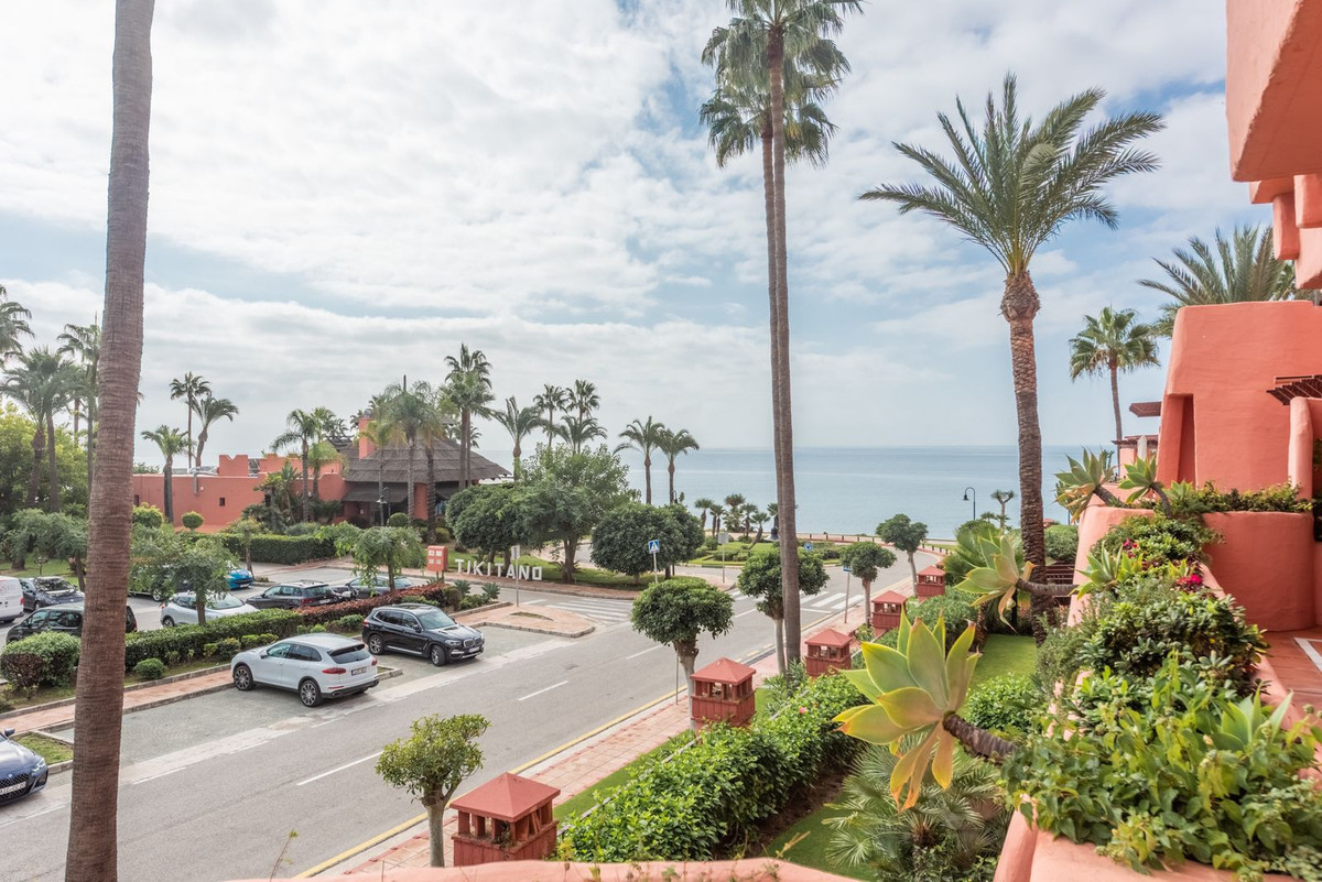Experience coastal living at its finest in this stunning frontline beach corner apartment, which offers breathtaking views of the Mediterranean Sea and the majestic mountains beyond. Situated on the first floor of one of the most luxurious and sought-after apartment complexes along Estepona's New Golden Mile, this residence is a true gem.