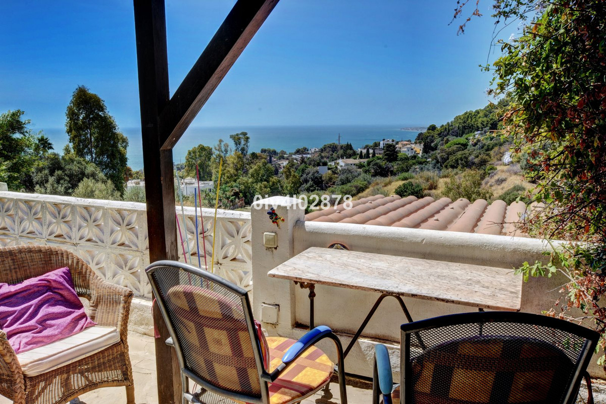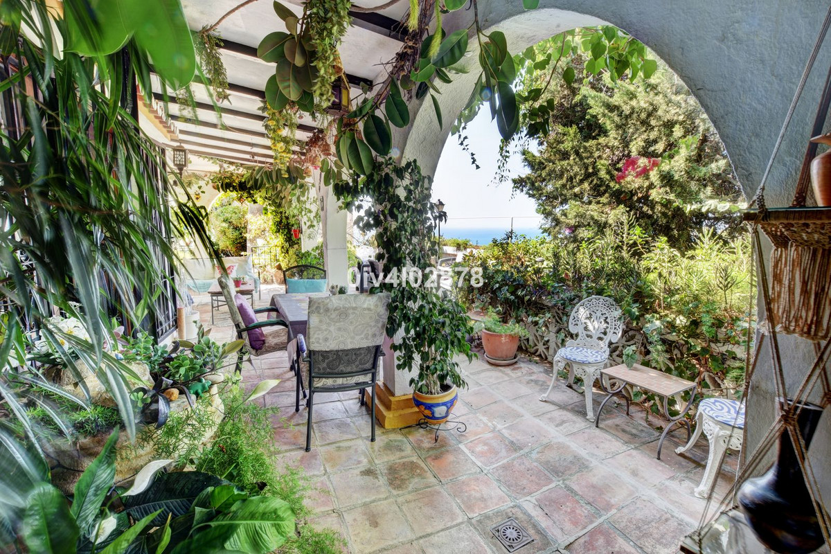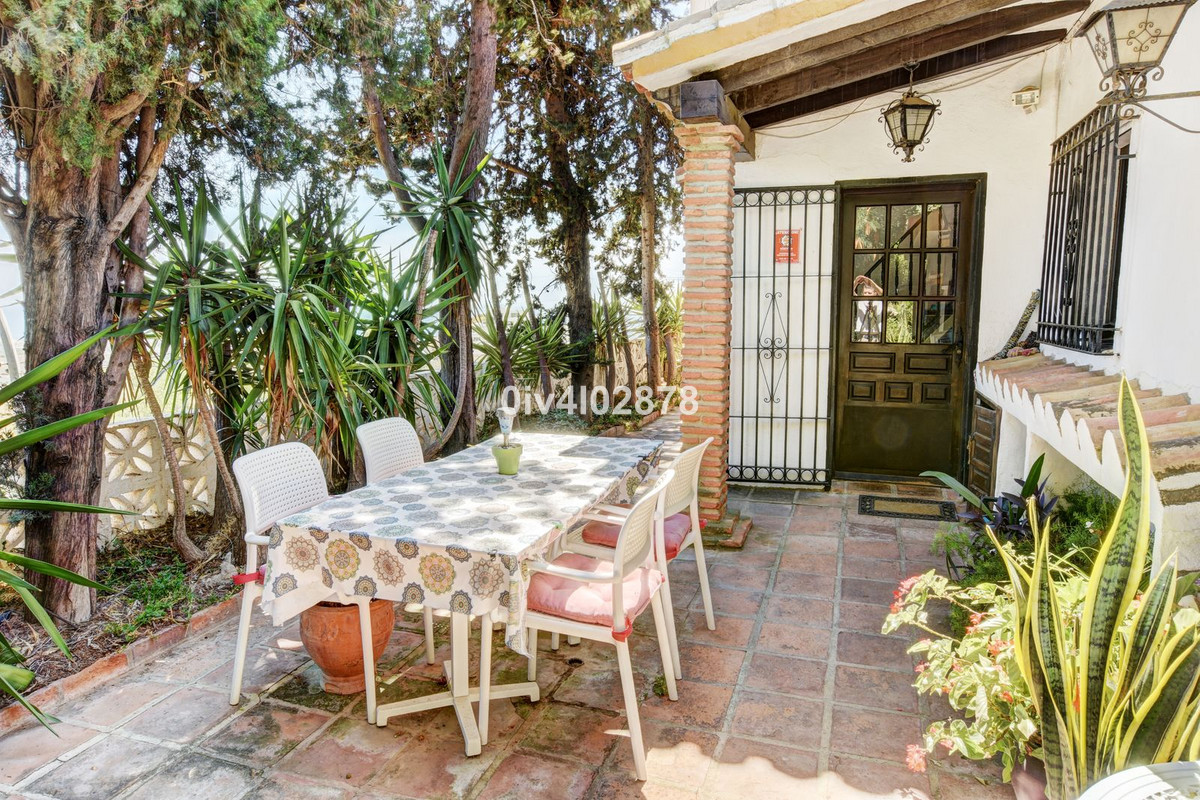 Nestled in an exceptional location that perfectly marries tranquil countryside living with the convenience of village life, this charming Andalusian-style villa is a true gem. Situated on a raised point with a serene, elevated position, the property offers stunning sea views towards Fuengirola, with the potential for panoramic views from various vantage points. The lush, mature trees and beautifully maintained bushes envelop the home, providing both privacy and a timeless character that is truly captivating.