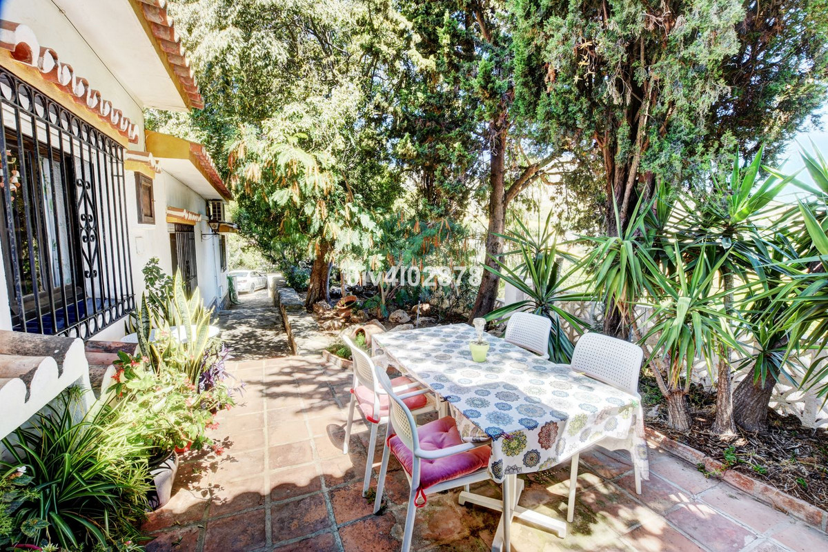The outdoor spaces are a defining feature of this home. In addition to the main terraces, the property is a mosaic of charming areas that invite relaxation and enjoyment. The pool area is a tranquil oasis, and the mature landscaping creates a peaceful and private ambiance. A significant highlight is the expansive, flat outdoor area, offering endless possibilities for creating a sprawling lawn, cultivating a vibrant fruit orchard, or establishing a productive vegetable garden. The property also features a separate one-bedroom guest apartment, complete with its own kitchen, bathroom, and a private terrace that shares the same beautiful views towards Fuengirola. Practical considerations are well catered for with a garage and a carport with space for three cars, offering ample off-road parking.