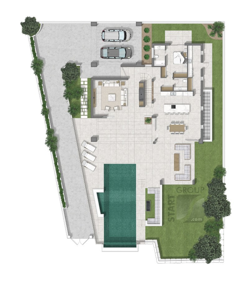 The buyer has the possibility to buy the villa with an optional basement. This area can include a garage for two to three cars, a guest bedroom, bathroom, storage area as well as a room that could be made into a gym, games room or even a home cinema!