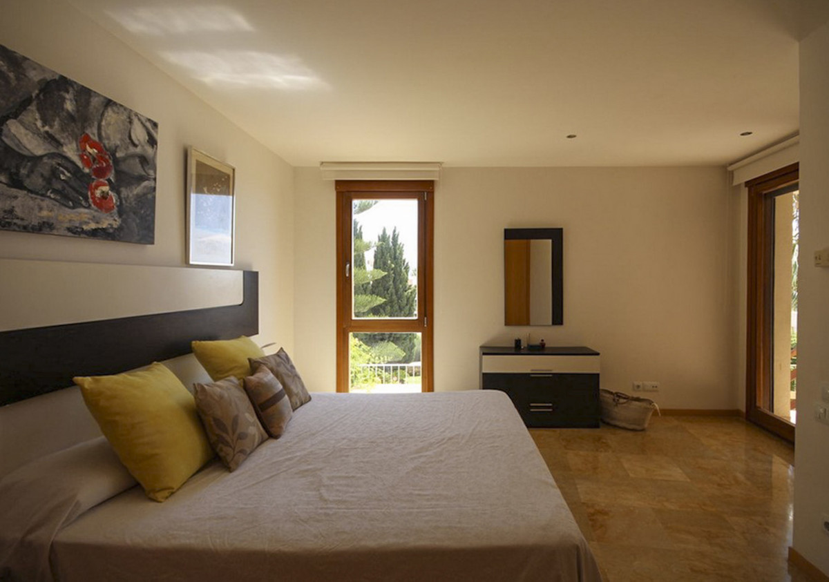 Lomas de los Monteros, Marbella East. This beautiful elevated ground floor apartment boasts 150 square meters of living space, featuring three spacious bedrooms, all with built-in wardrobes, two full bathrooms, and a guest toilet.