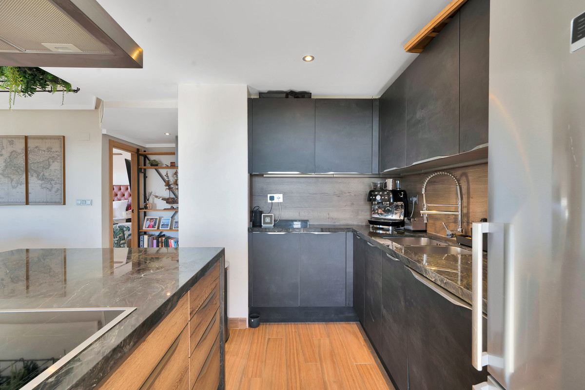 This spectacular duplex penthouse apartment of recent renovation and improvements, located on the second floor in corner, with south west orientation, has stunning panoramic views of the sea, the mountain, Gibraltar, the golf course and the whole environment. In addition, these views can never be blocked, due to their height.