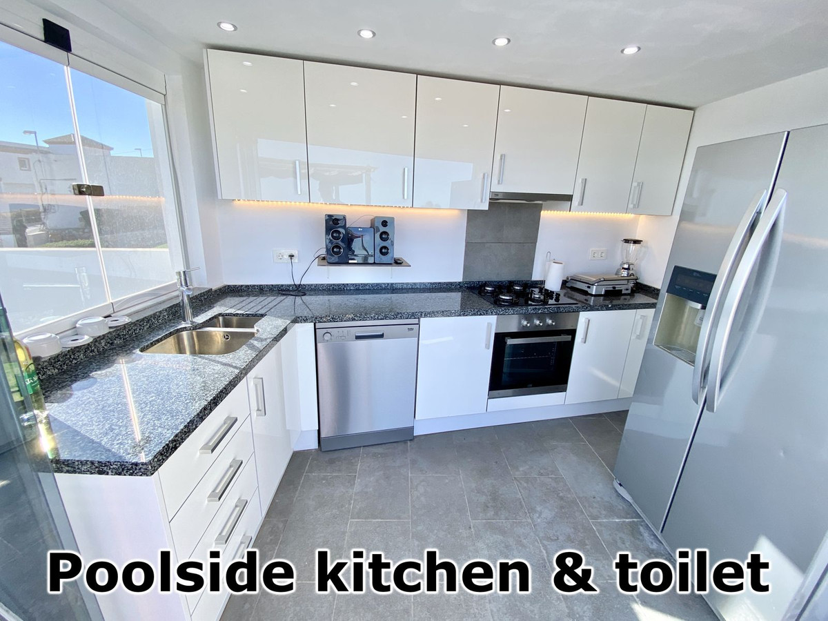 This stunning villa has lots of great outside entertaining areas including a beautiful main terrace from the lounge with heated swimming pool, entertaining area, separate covered modern kitchen and toilet. A further large family entertaining terrace / patio garden to the side. There is also a covered lounge area, sunny chill area and large roof solarium currently housing large jacuzzi. All have fabulous sea views.