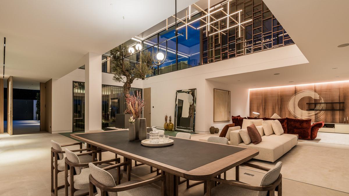 Het interieur van dit prachtige pand omvat vijf slaapkamers en vijf en-suite badkamers, waardoor een ruime en verfijnde woning ontstaat, afgewerkt met uitzonderlijk hoogwaardige materialen. Deze residentie biedt royale leefruimtes binnen en buiten, perfect om het hele jaar door te genieten van het uitzonderlijke klimaat van de regio. Op het terrein bevinden zich twee privézwembaden van serene schoonheid en een weelderige tuin met een betoverend uitzicht op zee.