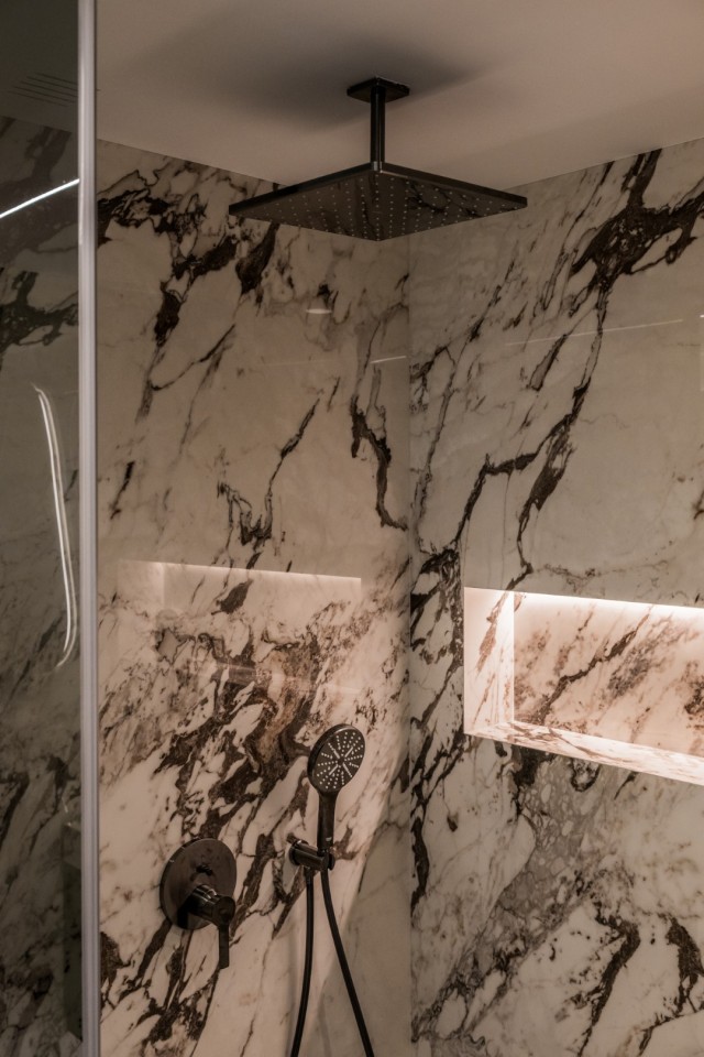 De master suite is een privéparadijs, compleet met op maat gemaakte kledingkasten, een verborgen tv in het plafond en een bio-ethanolhaard voor ultiem comfort. De luxe en-suite badkamer is voorzien van een vrijstaand bad en Japanse toiletten, wat zorgt voor een ware spa-achtige ontspanning. Twee extra slaapkamers delen een prachtig afgewerkte badkamer, met dezelfde hoge standaard van vakmanschap en design.